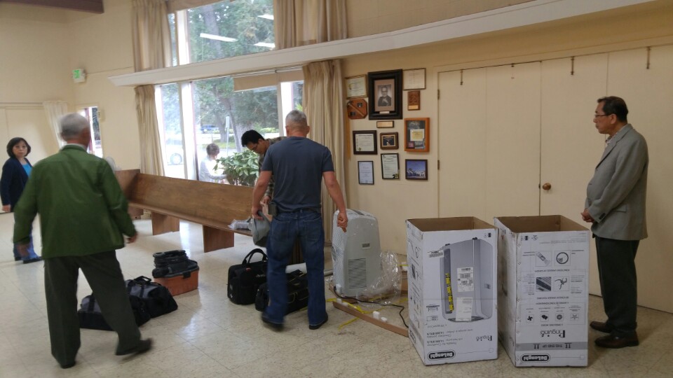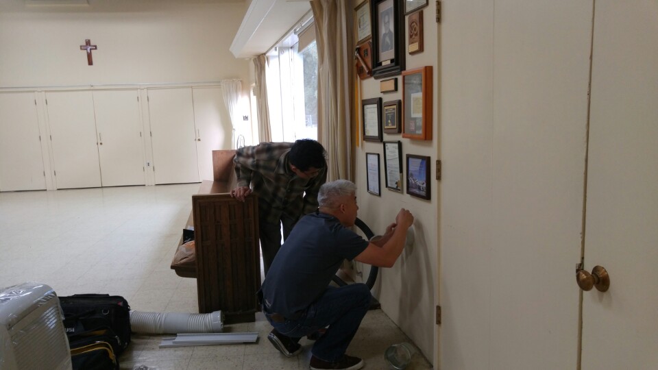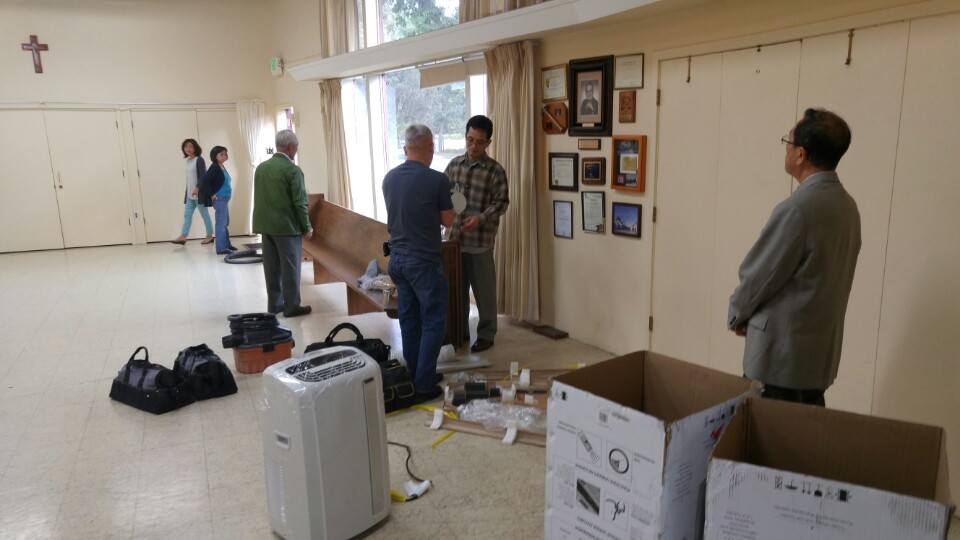 오늘 새벽기도회 끝나고 에어콘을 설치하였습니다.