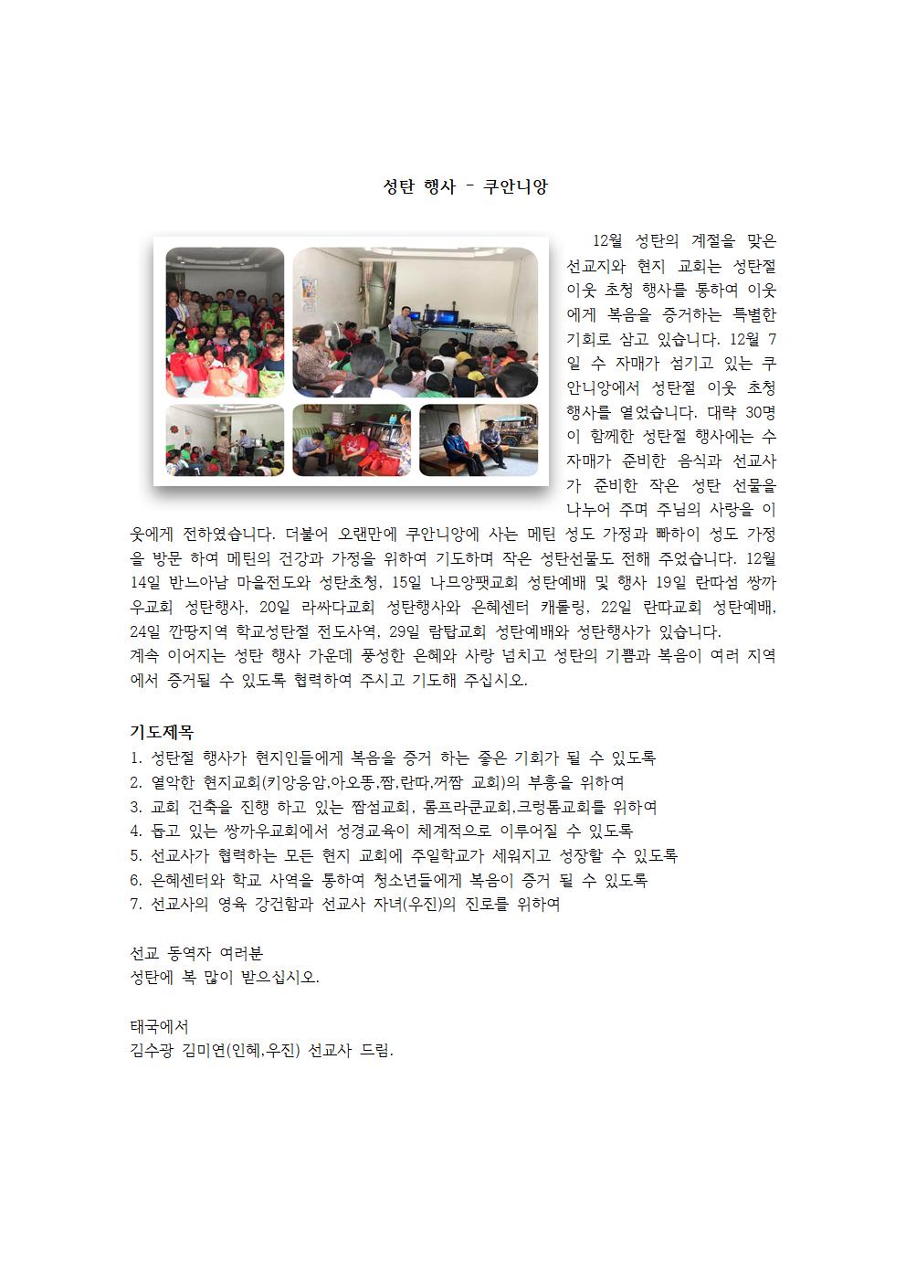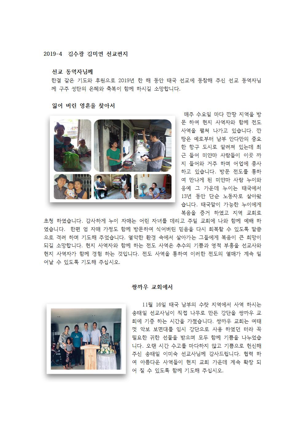 2019-12 태국 김수광 & 김미연 선교사 선교보고 및 기도요청