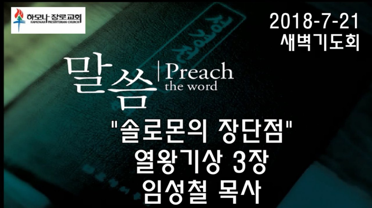 2018-7-21, "솔로몬의 장단점", 열왕기상 3장, 새벽기도회, 하모나장로교회, 임성철 목사