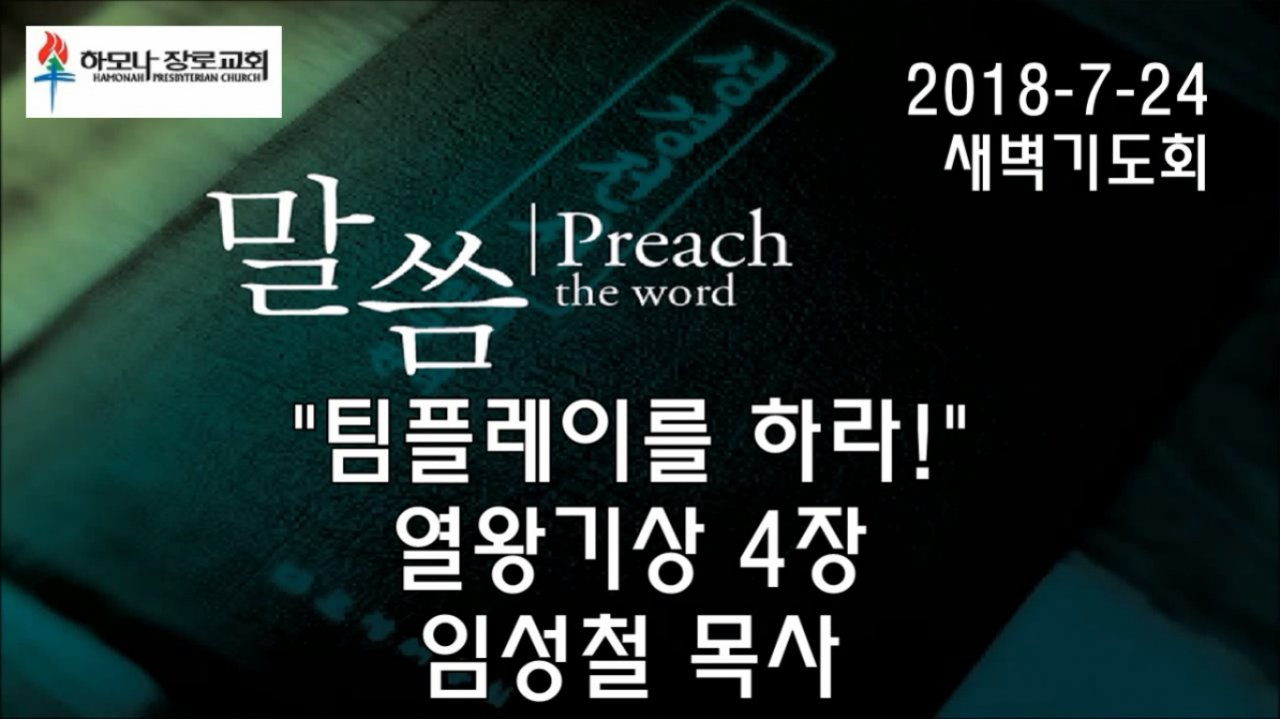 2018-7-24, "팀플레이를 하라!", 열왕기상 4장, 새벽기도회, 하모나장로교회, 임성철 목사