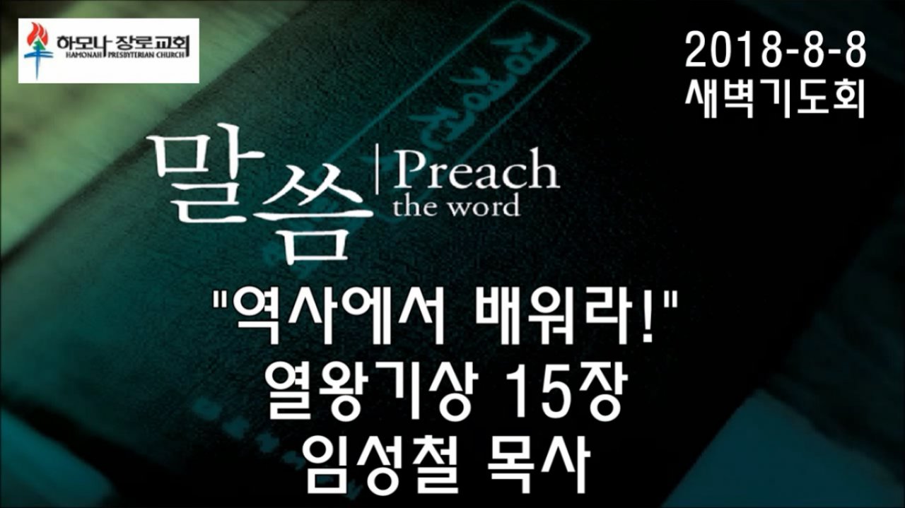 2018-8-8, "역사에서 배워라!", 열왕기상 15장, 새벽기도회, 하모나장로교회, 임성철 목사