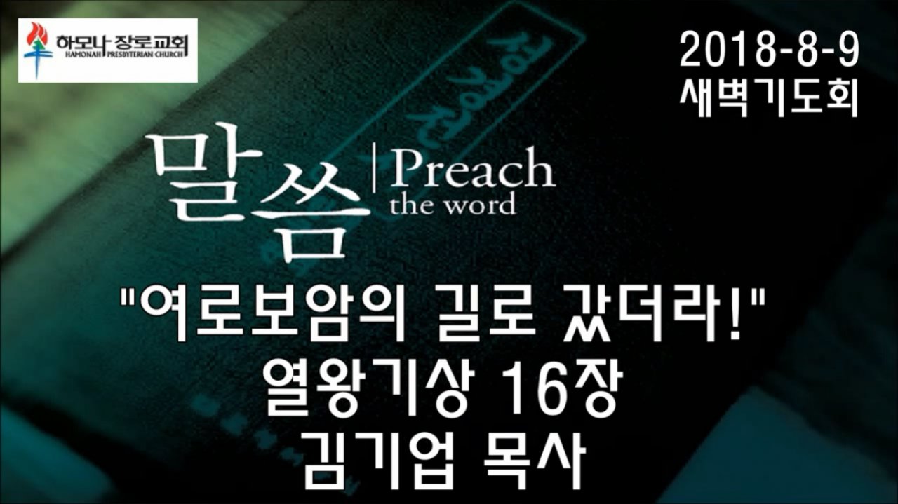 2018-8-9, "여로보암의 길로 갔더라!", 열왕기상 16장, 새벽기도회, 하모나장로교회, 김기업 목사