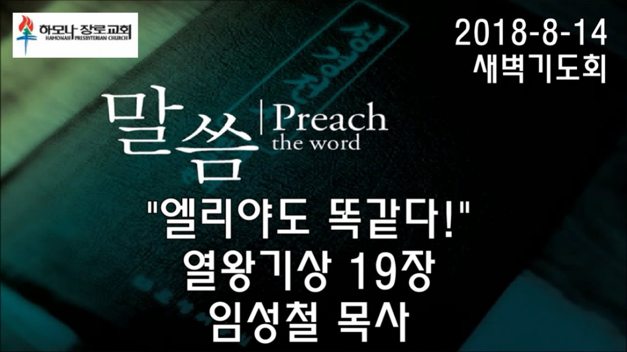 2018-8-14, "엘리야도 똑같다!", 열왕기상 19장, 새벽기도회, 하모나장로교회, 임성철 목사