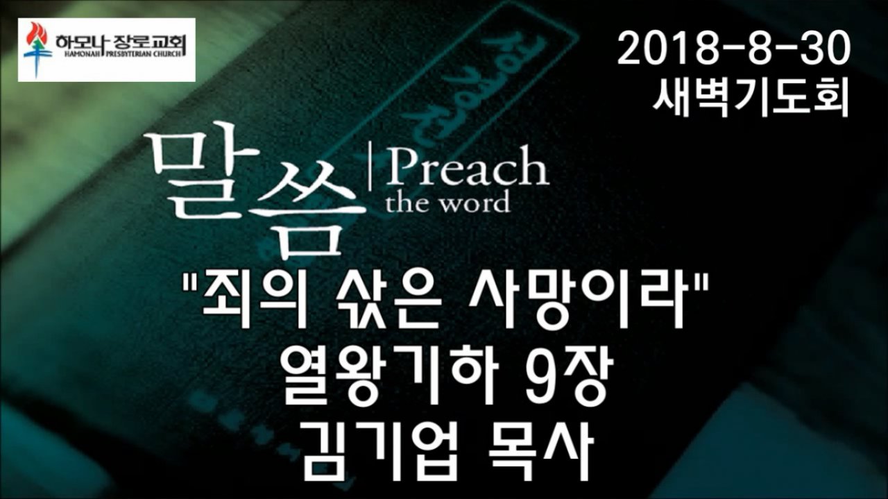 2018-8-30, "죄의 삯은 사망이라", 열왕기하 9장, 새벽기도회, 하모나장로교회, 김기업 목사