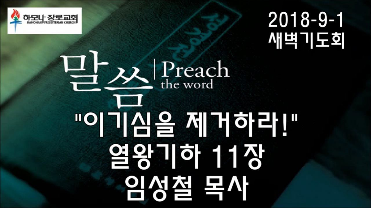 2018-9-1, "이기심을 제거하라!", 열왕기하 11장, 새벽기도회, 하모나장로교회, 임성철 목사