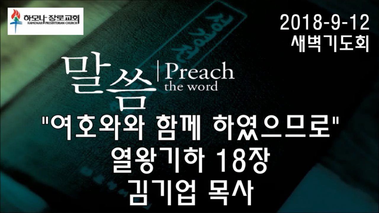 2018-9-12, "여호와와 함께 하였으므로", 열왕기하 18장, 새벽기도회, 하모나장로교회, 김기업 목사