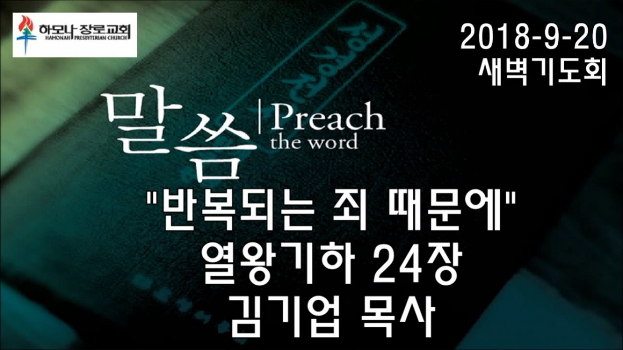 2018-9-20, "반복되는 죄 때문에", 열왕기하 24장, 새벽기도회, 하모나장로교회, 김기업 목사